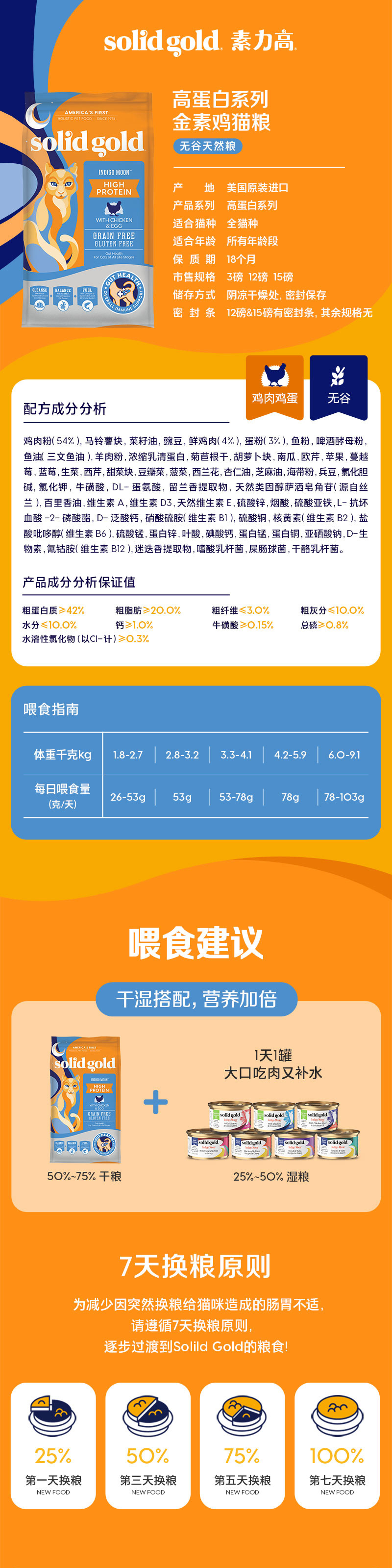 Solid Gold Indigo Moon含鸡肉蛋粉猫粮 12磅