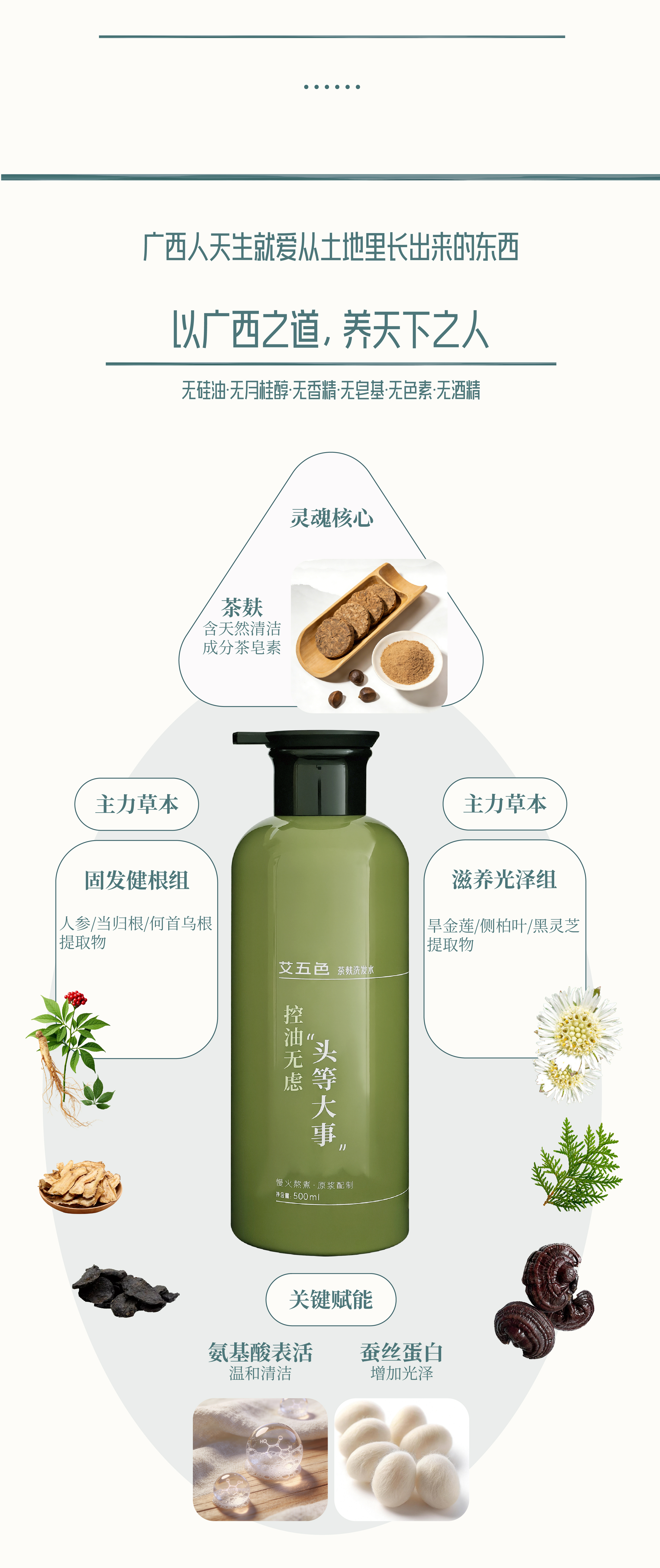 [控油/蓬松]艾五色茶麸洗发水500ml
